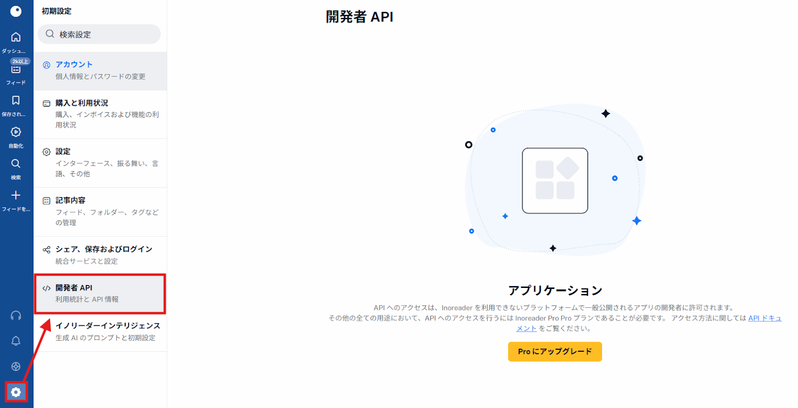 ※アプリケーションの作成はInoreaderのProプランにアップグレードする必要があります。