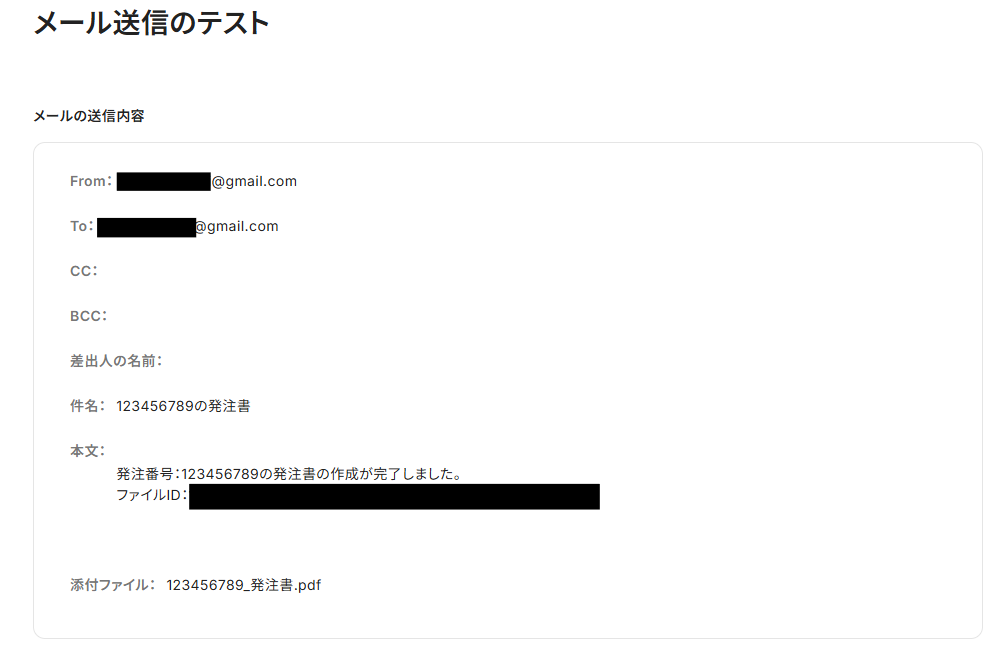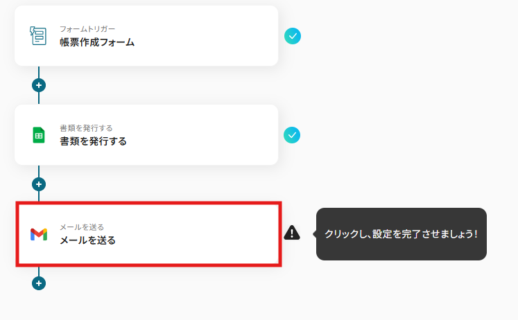 これで【フォームに回答された内容を元に帳票の自動生成を行い、PDFをGmailに送付する】というフローが完成です。