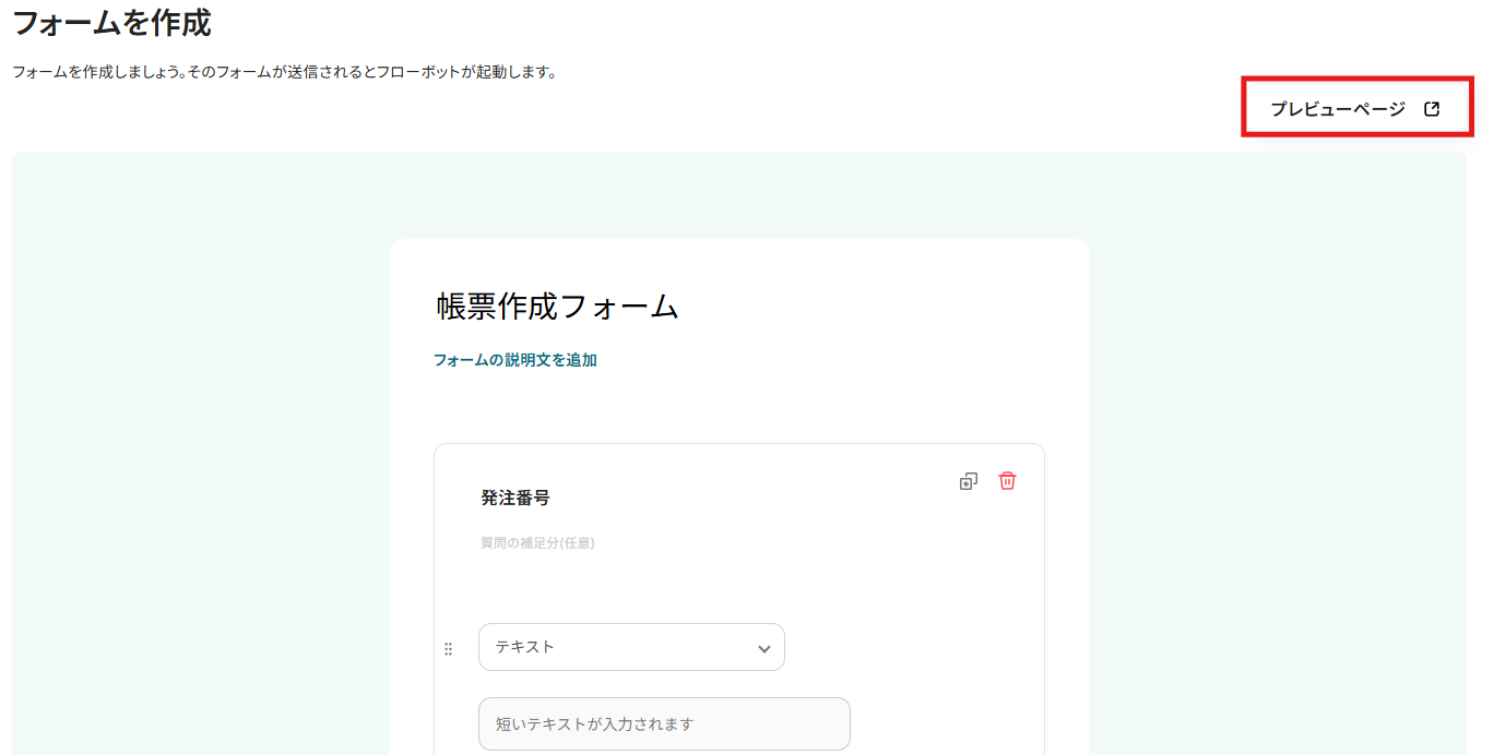 - フォームトリガー機能では、質問項目や形式を任意で設定し、独自の入力フォームを作成してください。