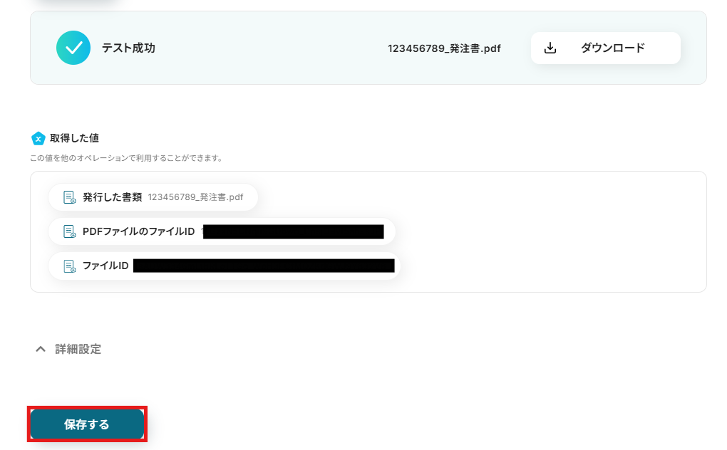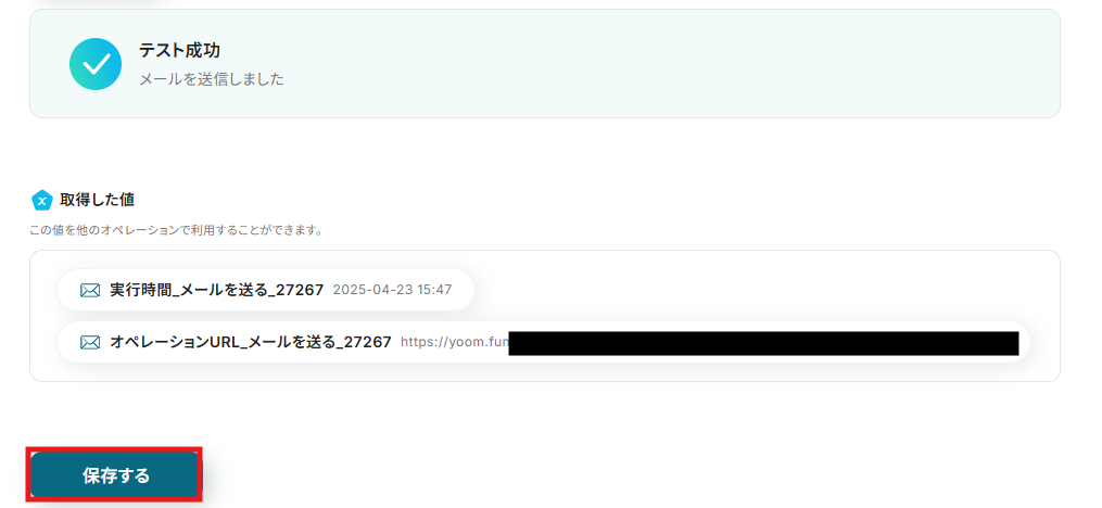 テスト完了後、「保存」をクリックします。