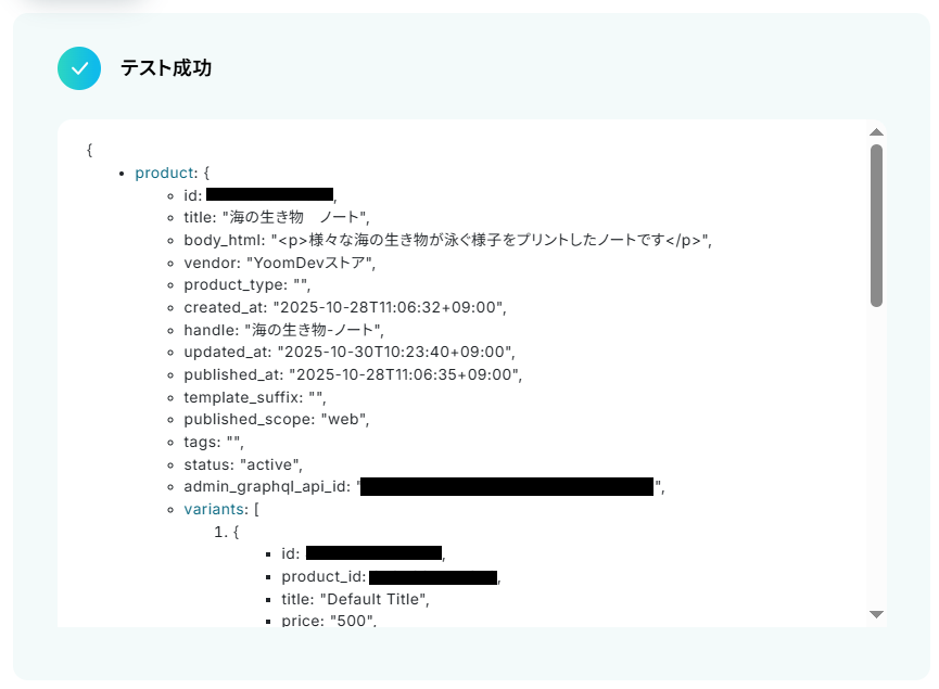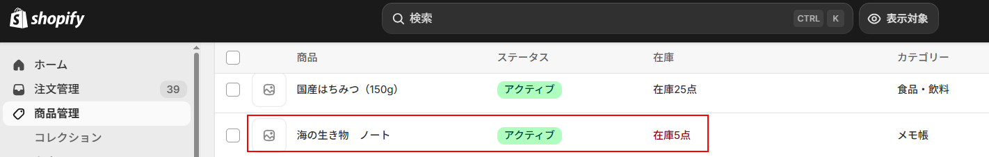 また、実際にShopifyの商品情報が更新されていますので確認してください。