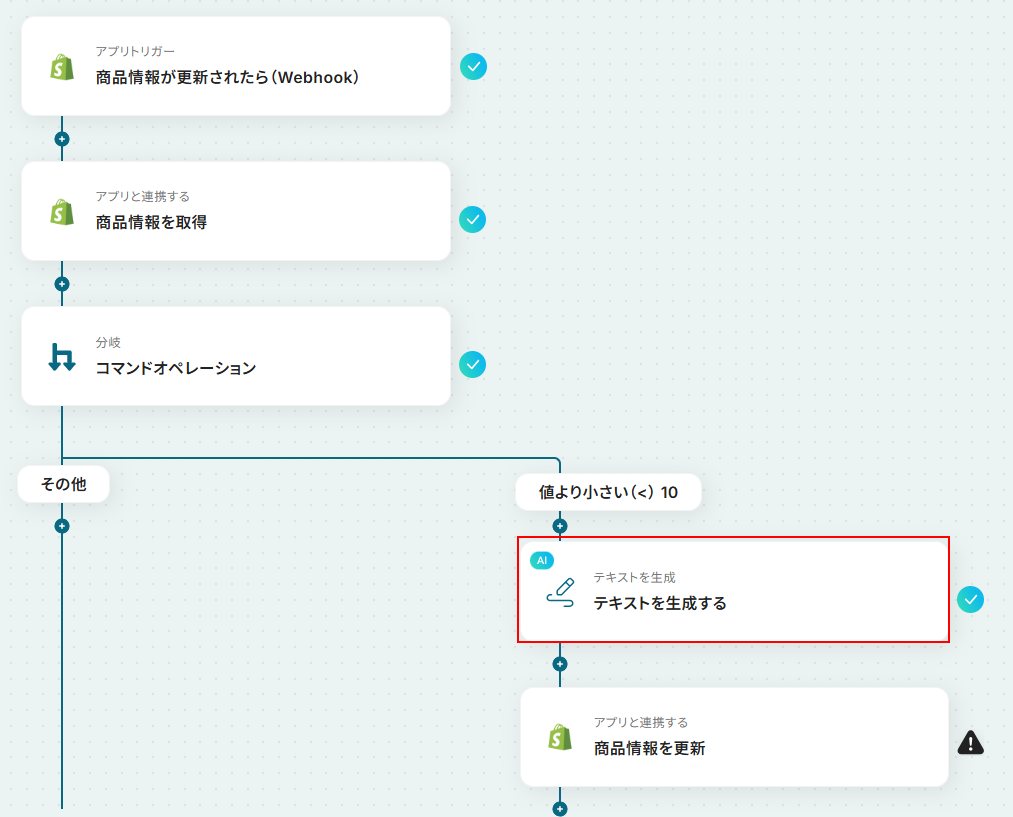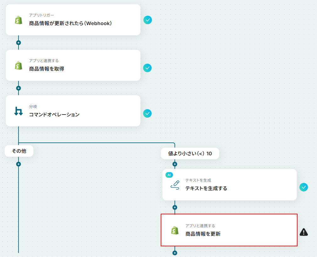 お疲れ様でした!ここまでで設定は完了です! 以上がShopifyで扱っている商品の在庫数が特定の閾値を下回った際に、AIが在庫警告文を自動で生成し、該当商品のタグと説明文を更新する フローでした!