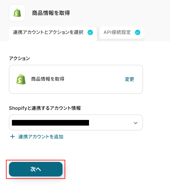 ステップ4:Shopifyの商品情報を取得する設定