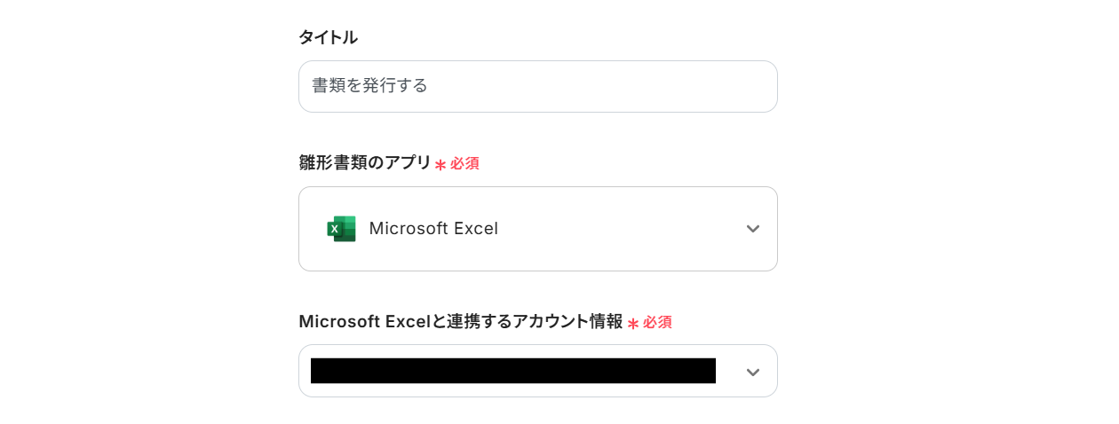 Microsoft Excelと連携するアカウント情報をプルダウンから選択します。