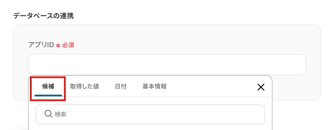 アプリIDは入力欄をクリックすると候補が一覧で表示されるので、該当するものを選びます。
