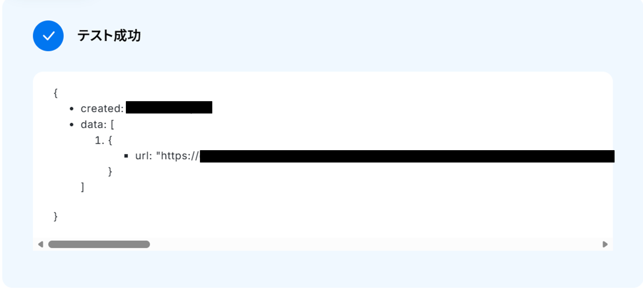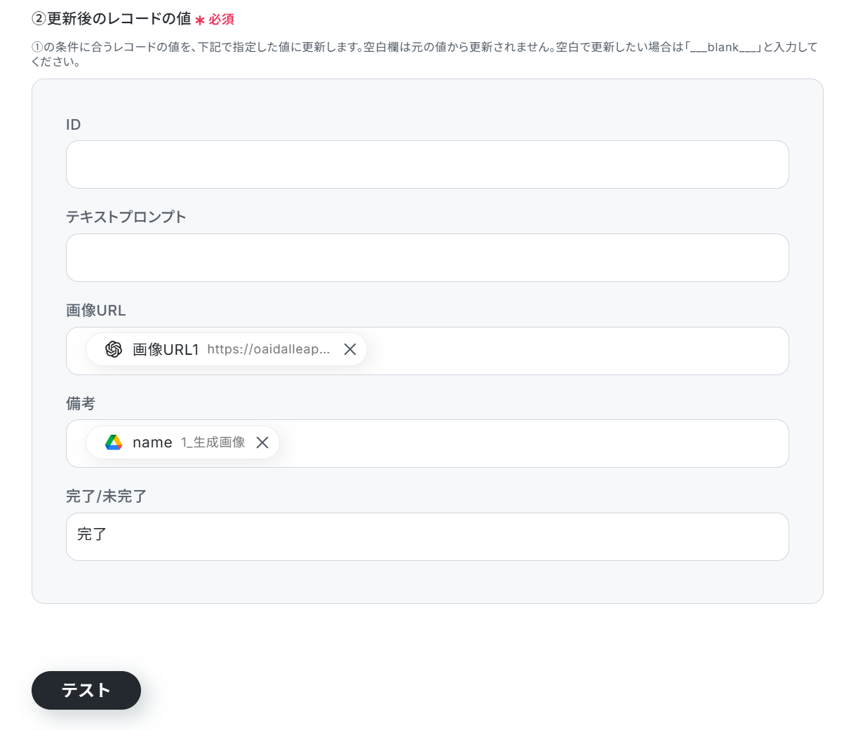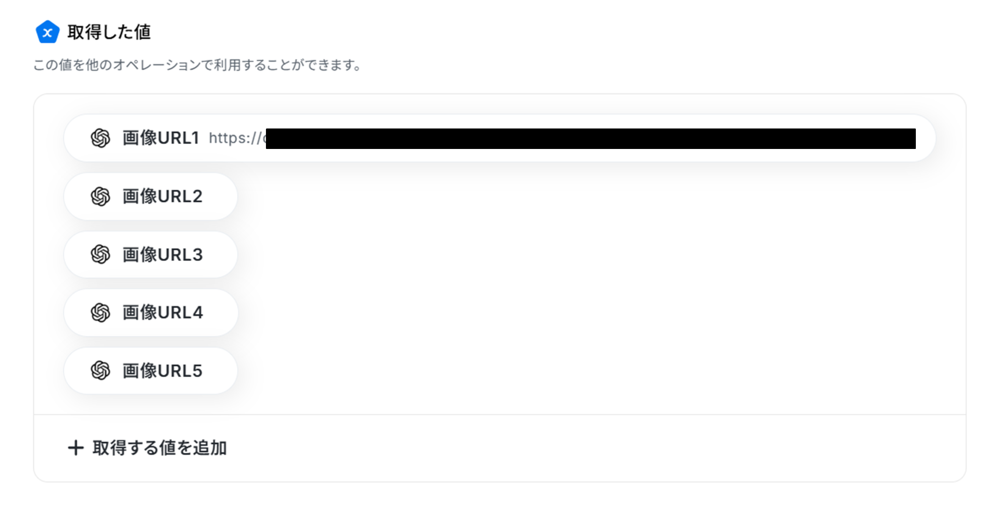 テストに成功すると、取得した値に「画像ファイル」が追加されます。