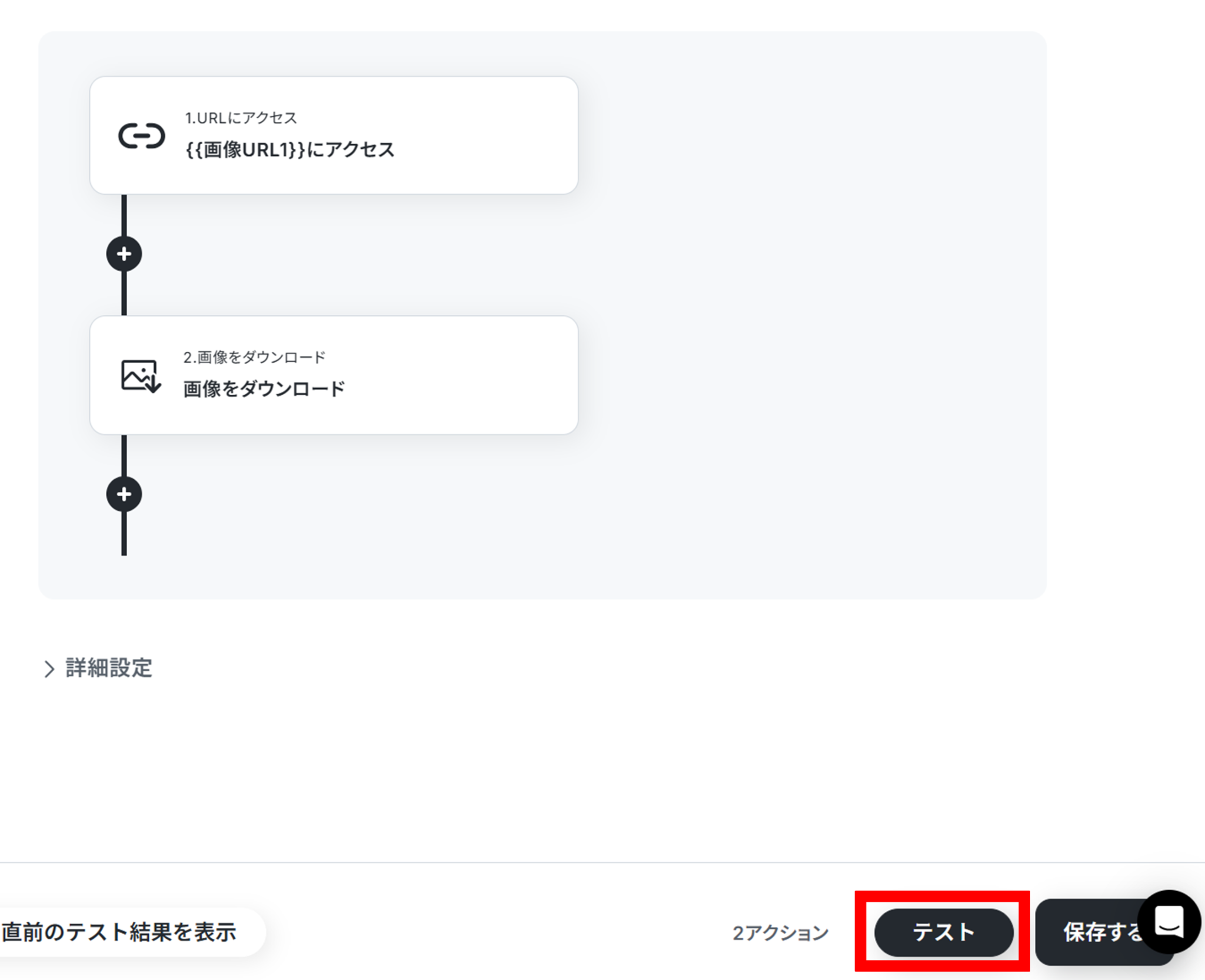 入力が終わったら「テスト」をクリックしましょう。