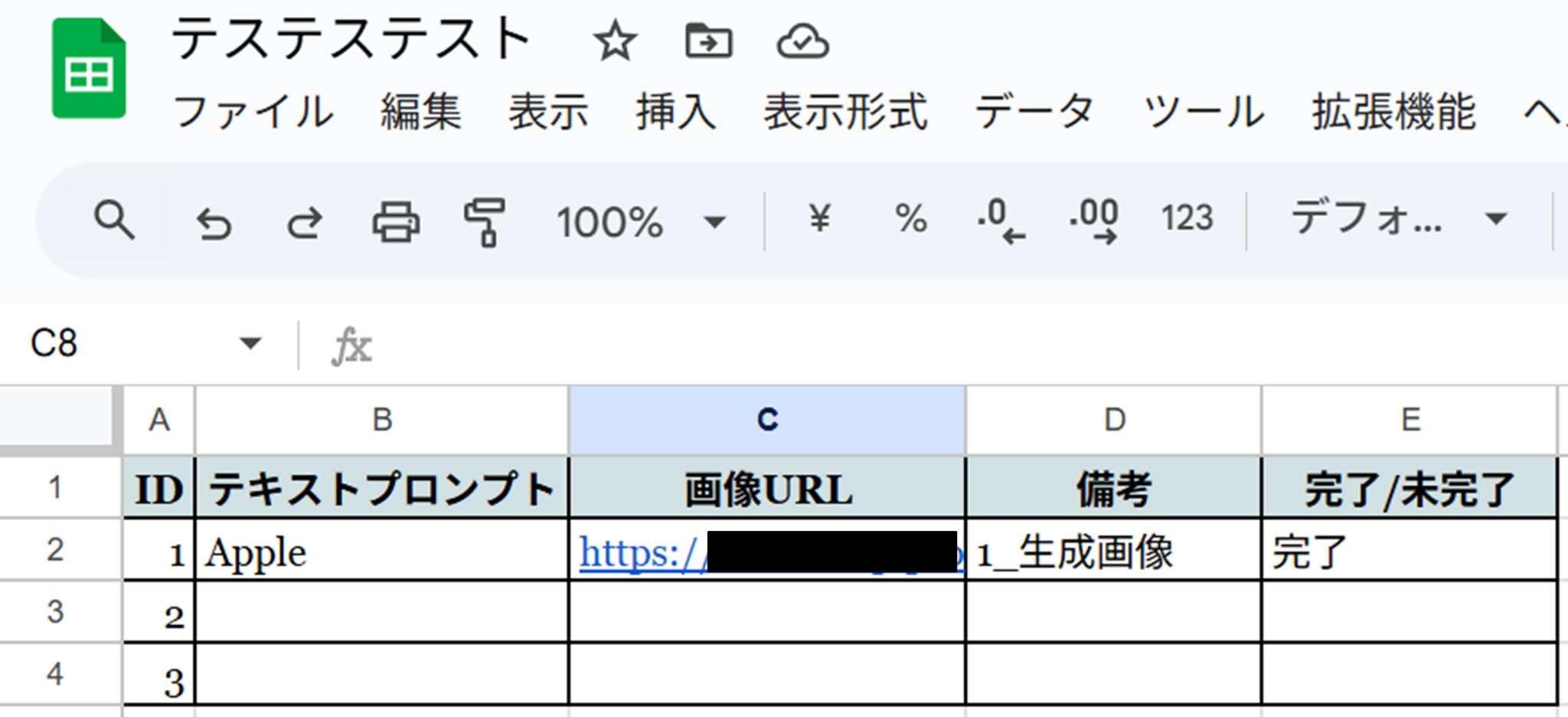 テストに成功すると、Google スプレッドシートにも情報が反映されます。