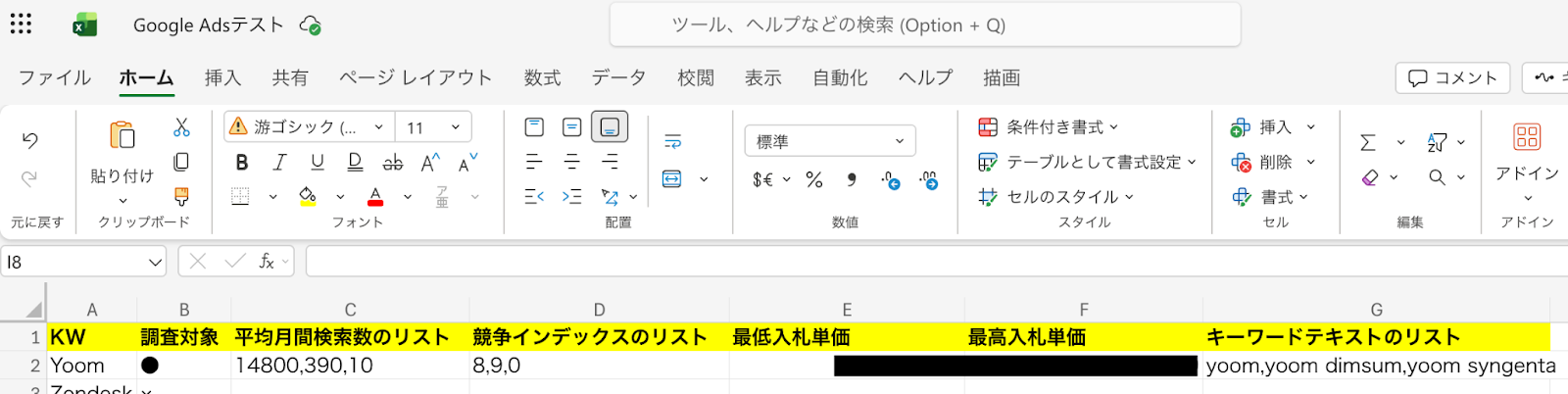 Microsoft Excelのレコード情報をもとに、Google Adsでキーワードの候補を取得し結果を追加する