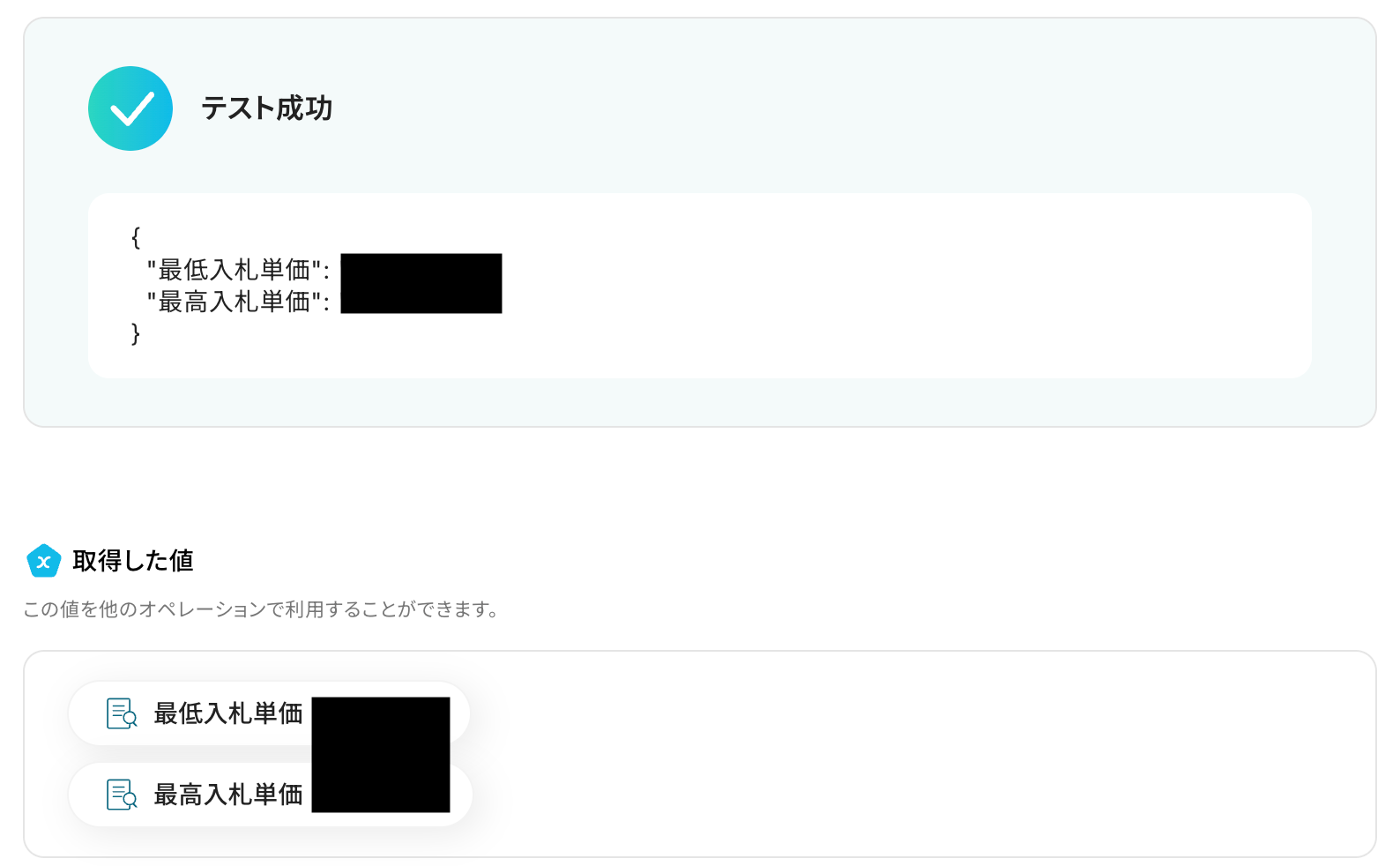 以下の画像の取得した値は、この後のステップで利用可能です。