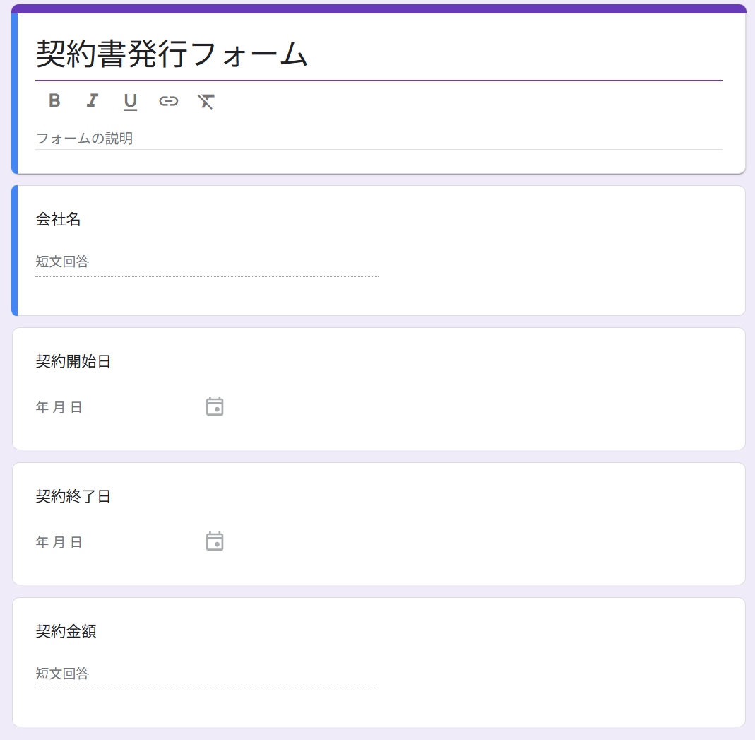 なお、今回はテストとして以下のフォームを使用しています。 テストするため、回答者としてフォームに記入し、送信してください。