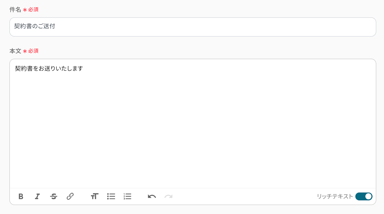 例えば、取引が特定のステージに更新されたタイミングで契約書を送付するといった、実務に即した運用も可能です。