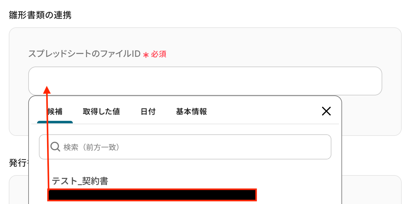 - Google スプレッドシートで書類を発行するアクションでは、雛形として利用するスプレッドシートのファイルIDを任意で設定してください