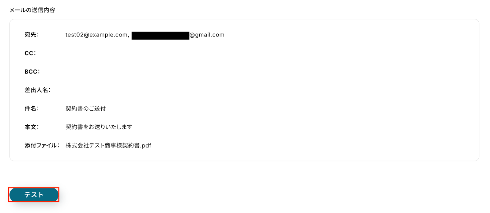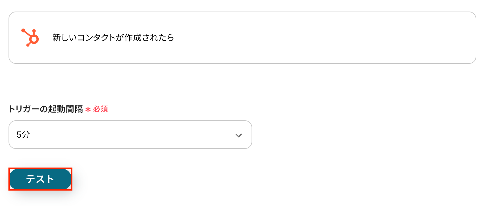 入力が完了したら、設定内容とトリガーの動作を確認するため「テスト」をクリックします。