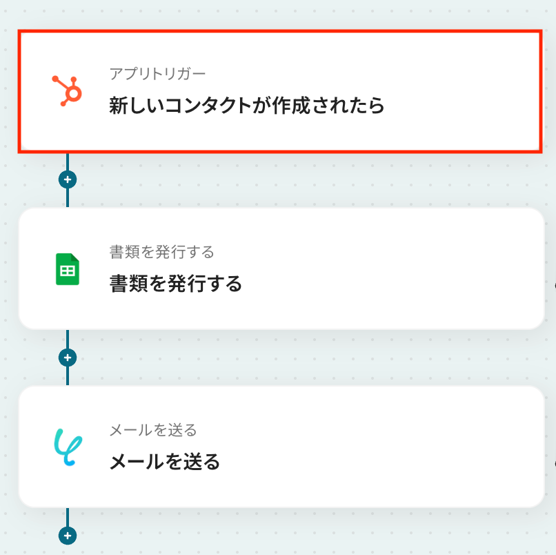 それではここから代表的な例として、HubSpotに新しいコンタクトが作成された際に、その情報を基に契約書を自動で作成し、送信するフローを解説していきます!