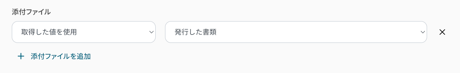 - 最後に、オペレーションでメール機能の「メールを送る」アクションを設定し、発行した書類を添付して指定の宛先に送付します
