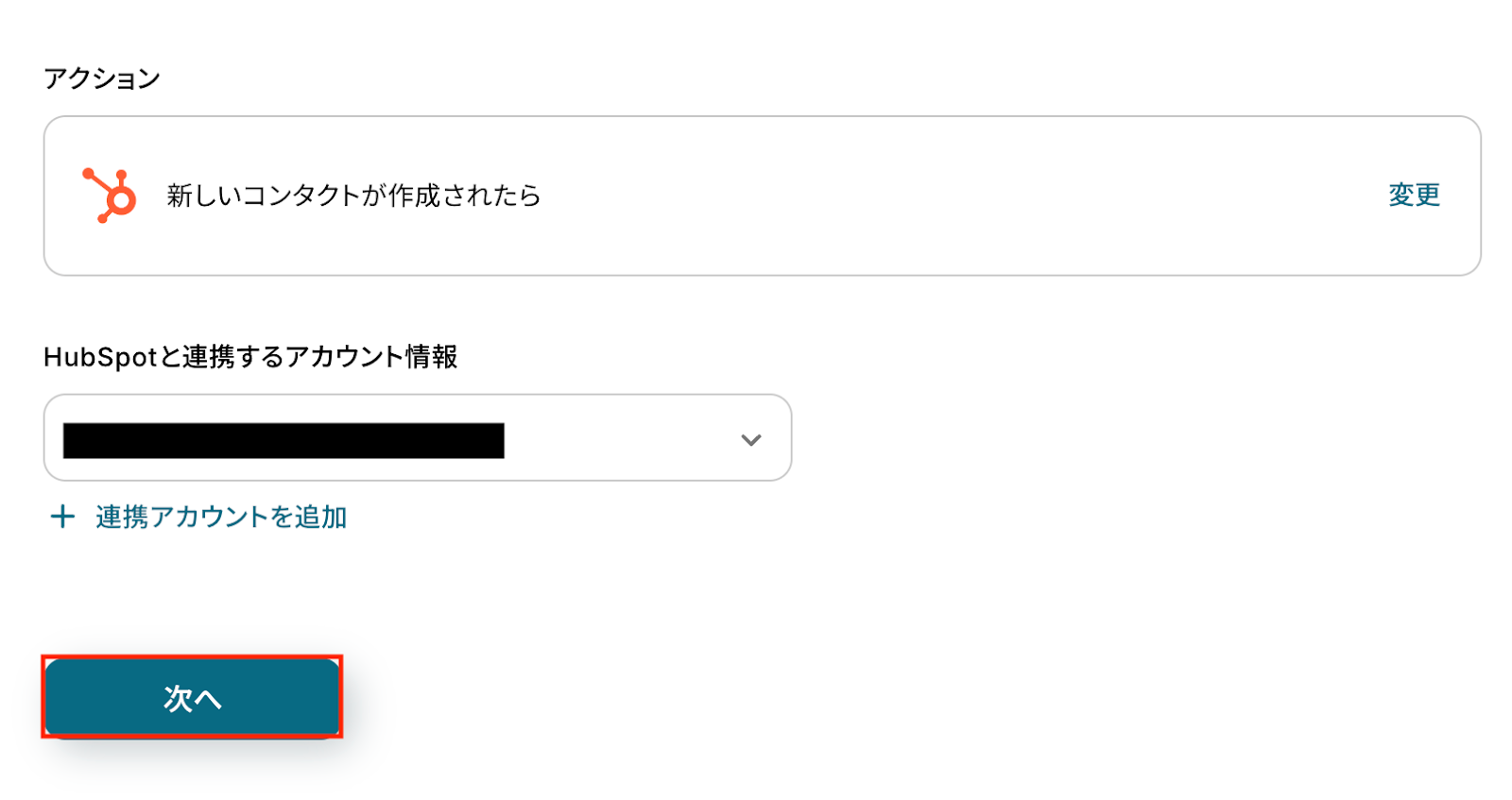 HubSpotと連携するアカウント情報に問題がなければ、「次へ」をクリックします。