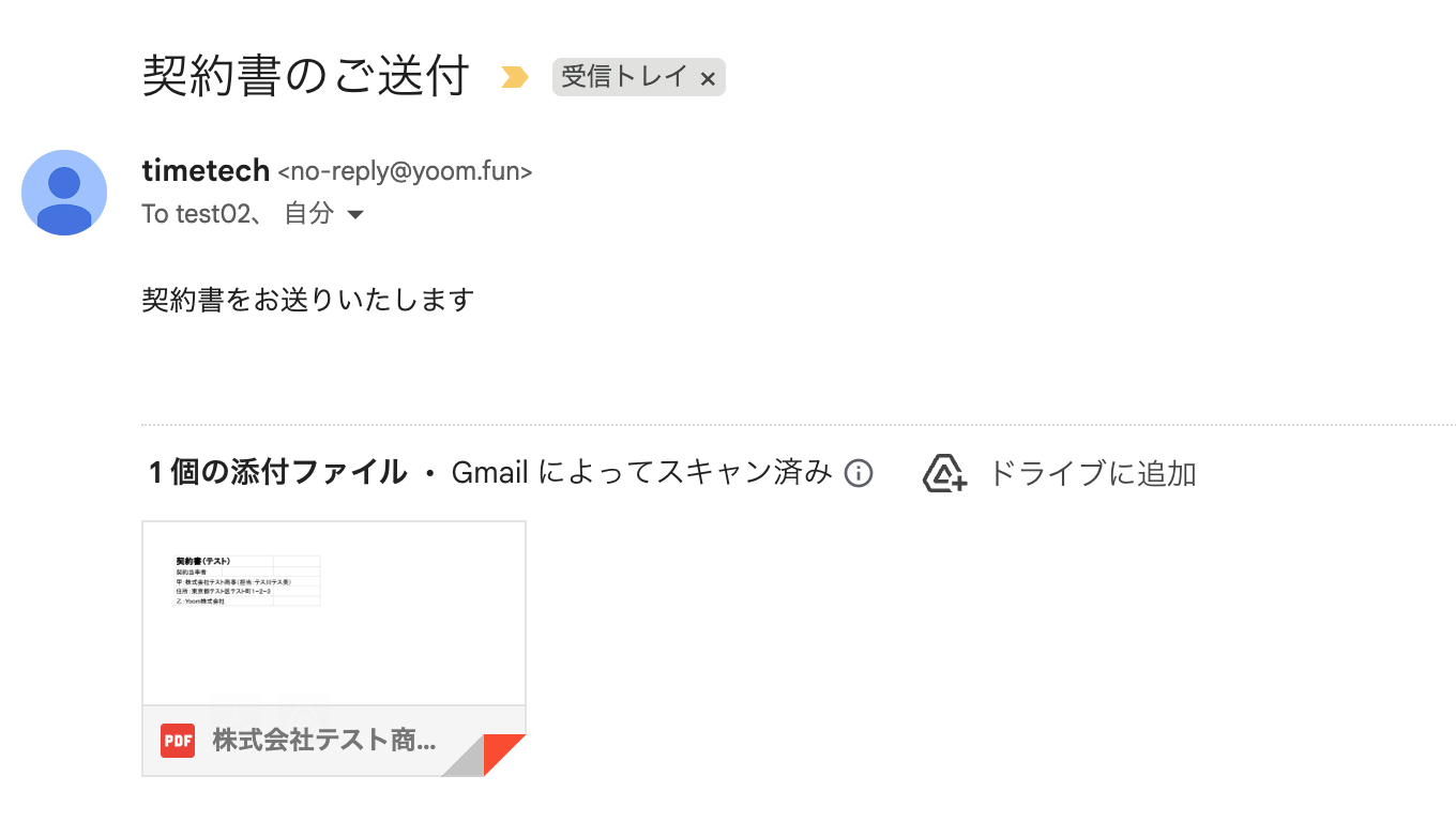 - 最後に、メール機能の「メールを送る」で、作成した請求書PDFを添付し、取得した顧客のメールアドレス宛に自動で送信します。