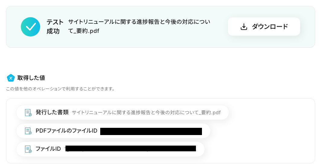 ここで取得した値を次のステップで使用します!