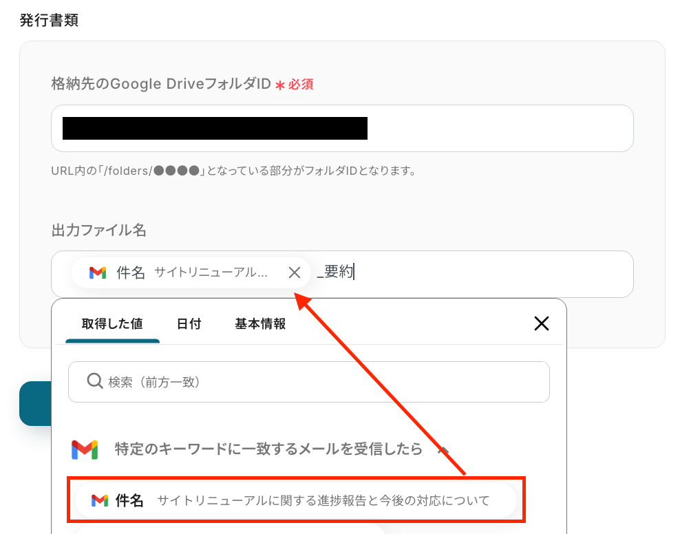 ・「書類を発行する」アクションでは、任意のGoogle Driveの格納先を設定可能です。