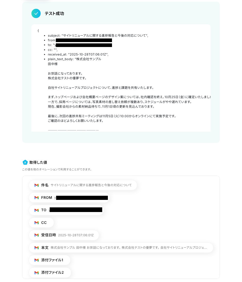 先ほどテスト送信したメール内容が反映されていれば、OKです!
