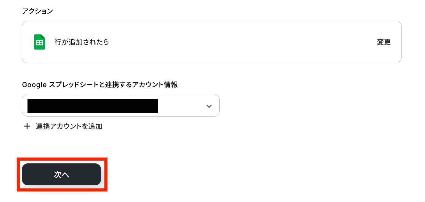 アカウント情報を確認できたら、「次へ」ボタンをクリックします。
