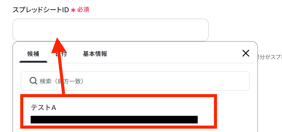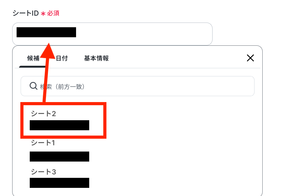 対象の営業レポートのスプレッドシートIDを候補から選択します。