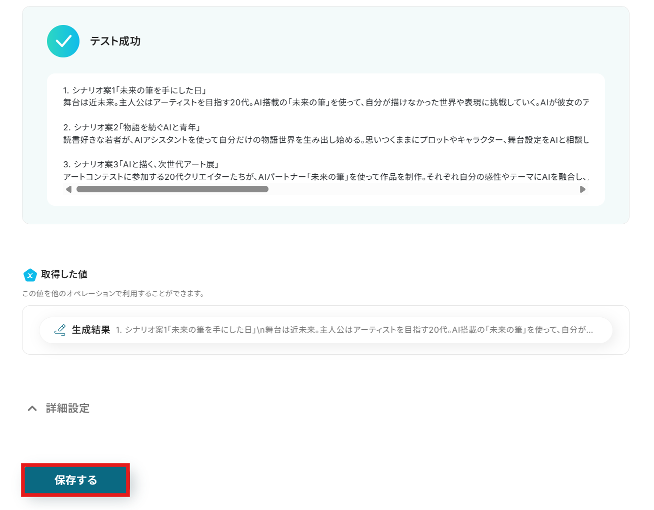 ステップ4:AIでシナリオライティングを生成する設定