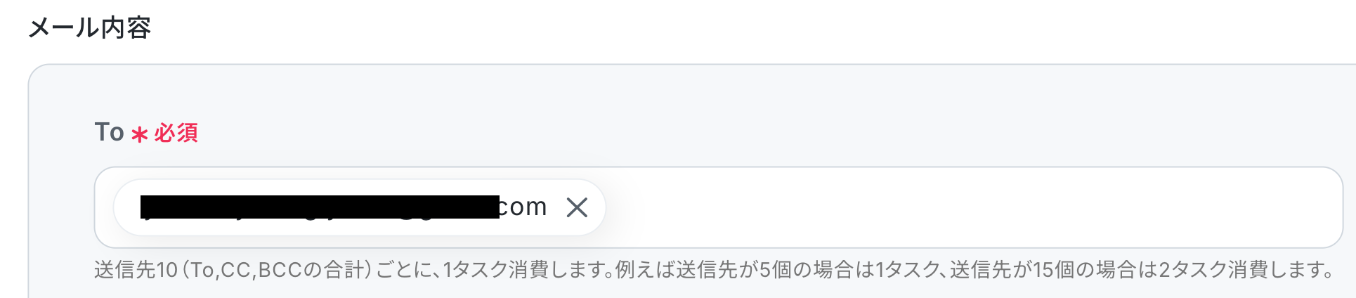 - Yoomの「メールを送る」アクションでは、通知したい先のメールアドレスや、任意の件名、本文を設定してください。