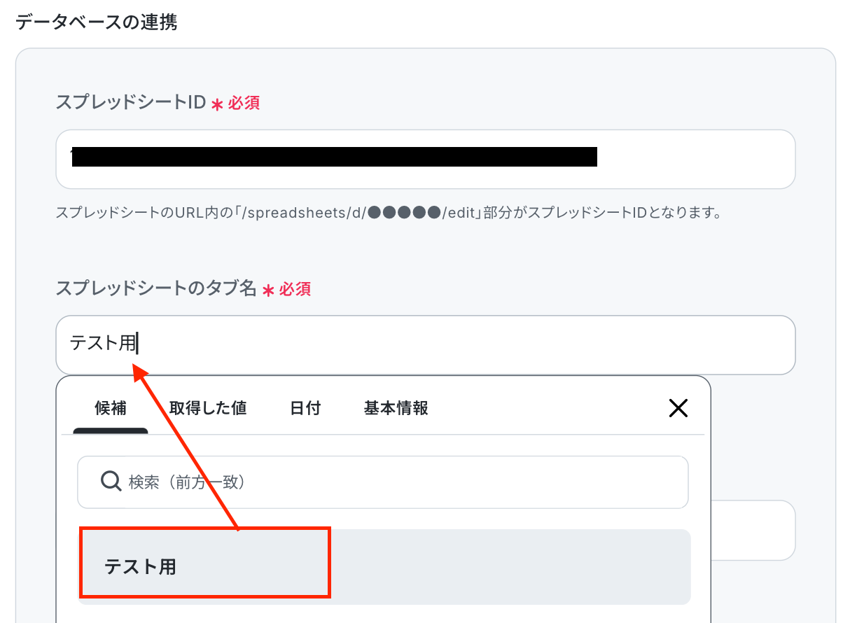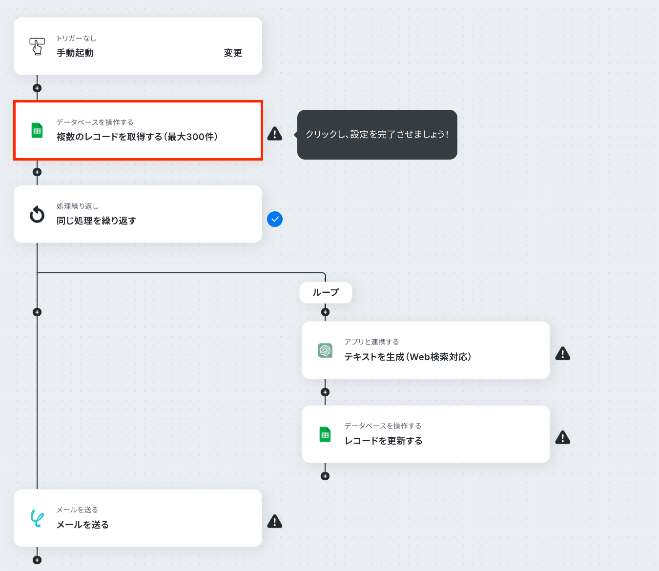 ここでは、Google スプレッドシートの複数のレコードを取得する設定を行います。