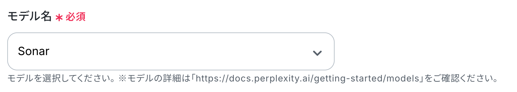 「モデル名」 は、入力欄下の注釈を参照して、プルダウンから選択しましょう。