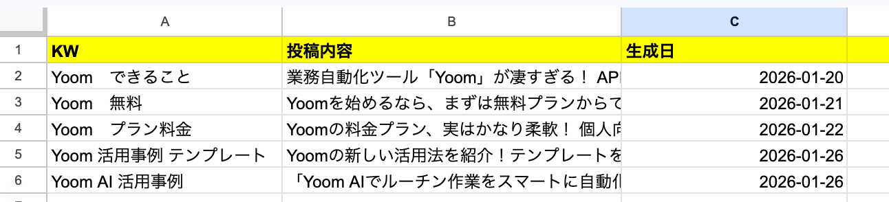 定期的にAIとGoogle スプレッドシートでSNSへの投稿を自動生成する