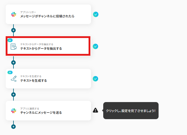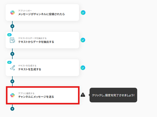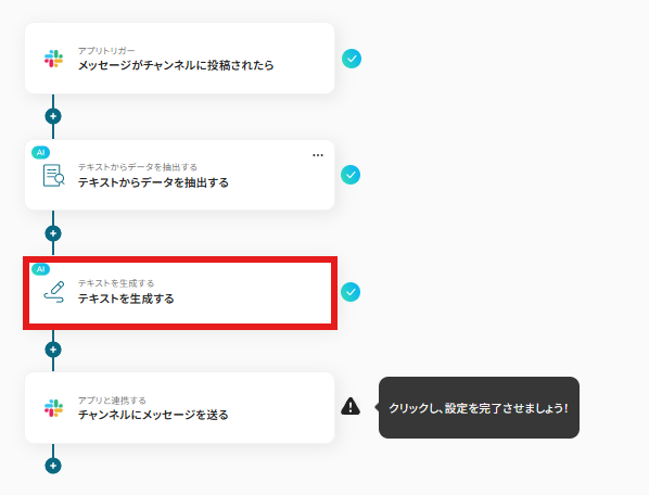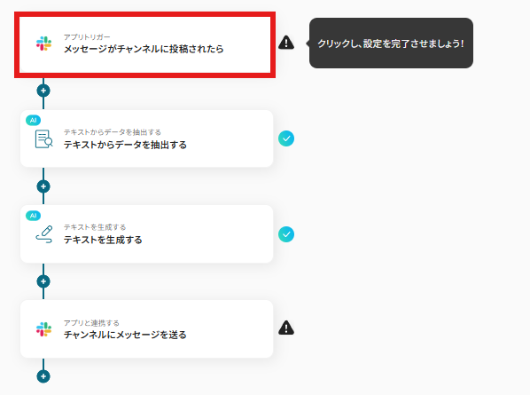 それでは、ここからは一例として、「Slackで受信した商品情報をもとに、AIでキャッチコピーを生成し通知する」フローの設定方法をご紹介しましょう!