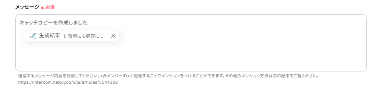 メッセージにはSlackに生成したキャッチコピーを通知するための内容を入力します。