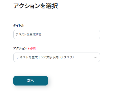 キャッチコピーを作成するため、AIを用いて必要情報をするための設定を行います。