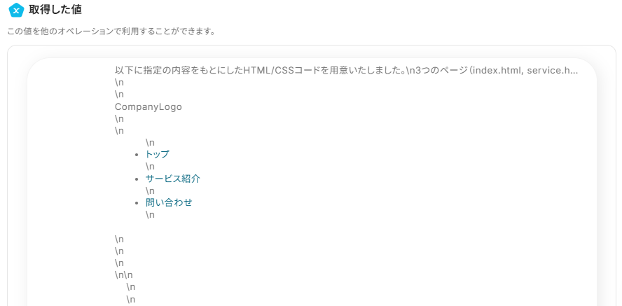 Google スプレッドシートなどのスプレッドシートサービスにWeb制作の依頼情報が追加されると、そのデータを基にAIがHTMLやCSSなどのコードを自動生成することも可能です。リスト形式で管理された複数の制作案件も効率的に処理し、制作の生産性を高めることができます!