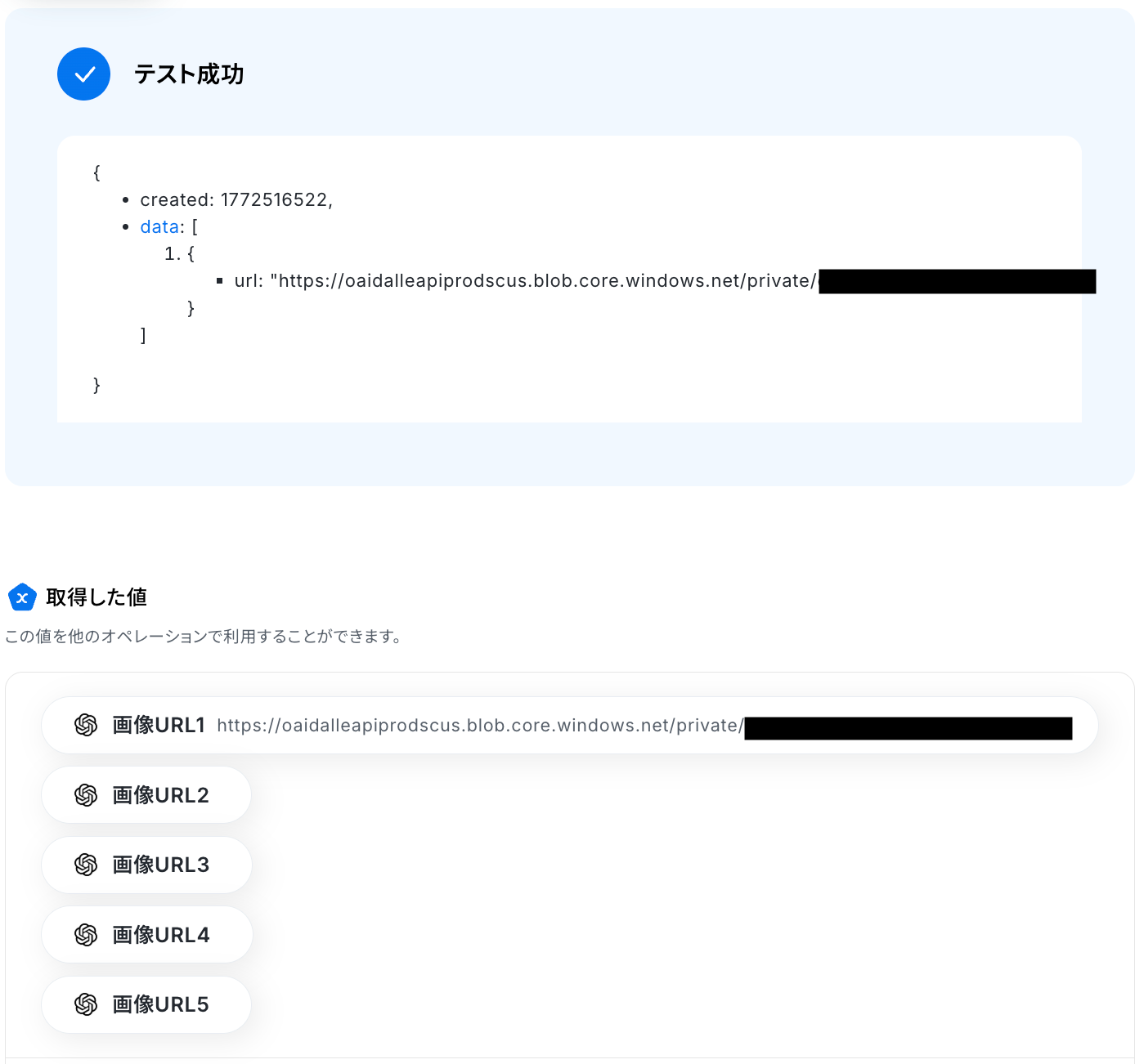 以下の取得した値はこの後のステップで利用できます。