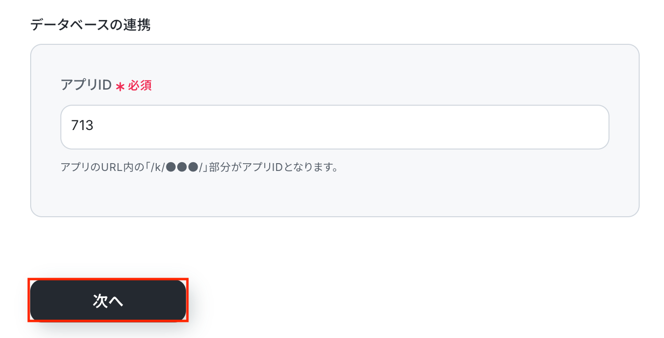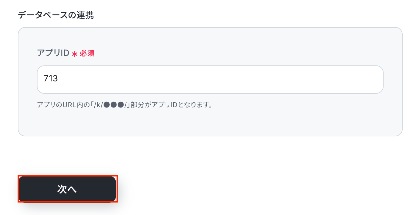 候補がうまく表示されない場合は、注釈に沿ってkintoneアプリのURLから入力してください。