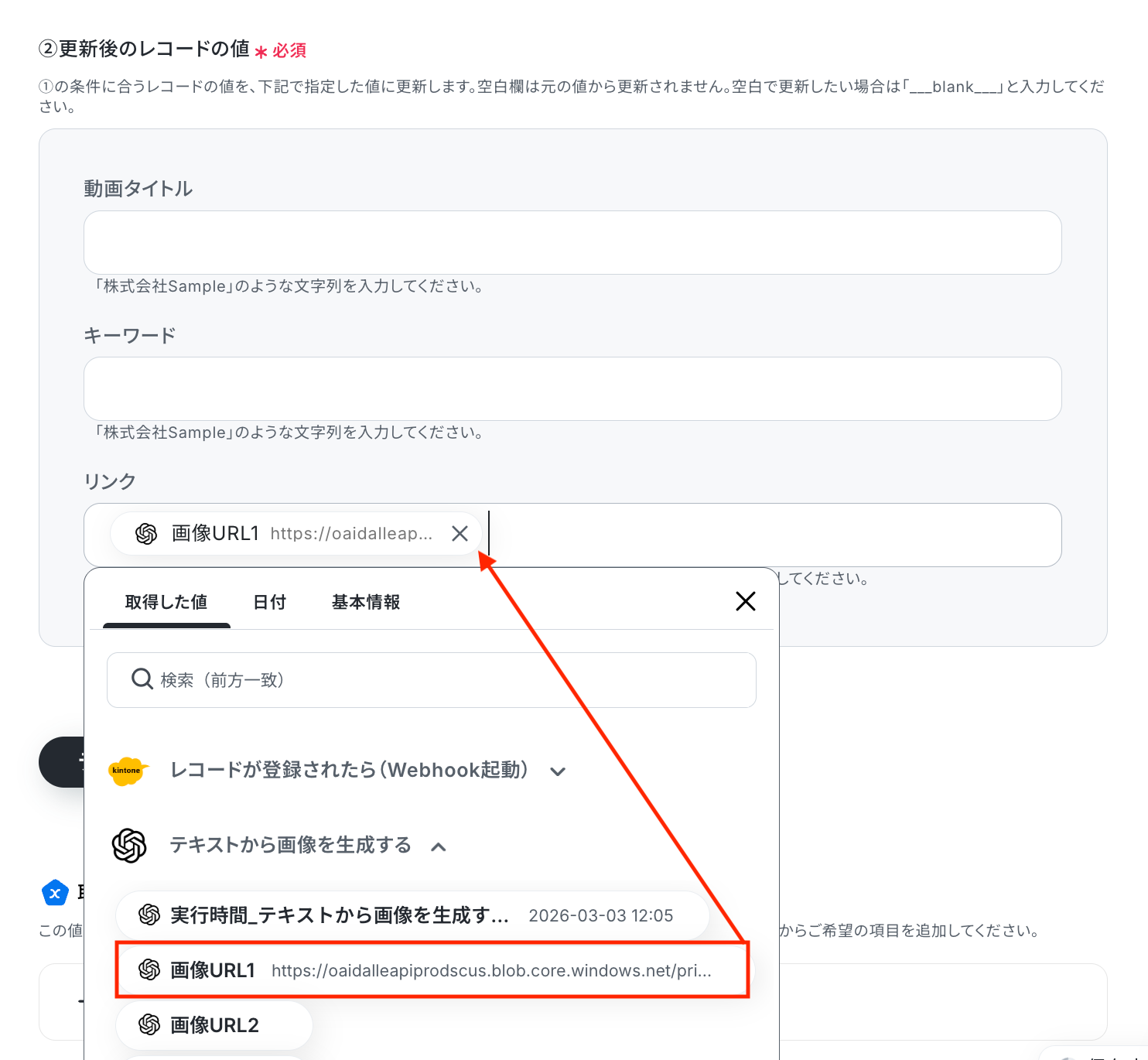kintoneに追加された内容からOpenAIで画像を生成し、取得したURLを追加する