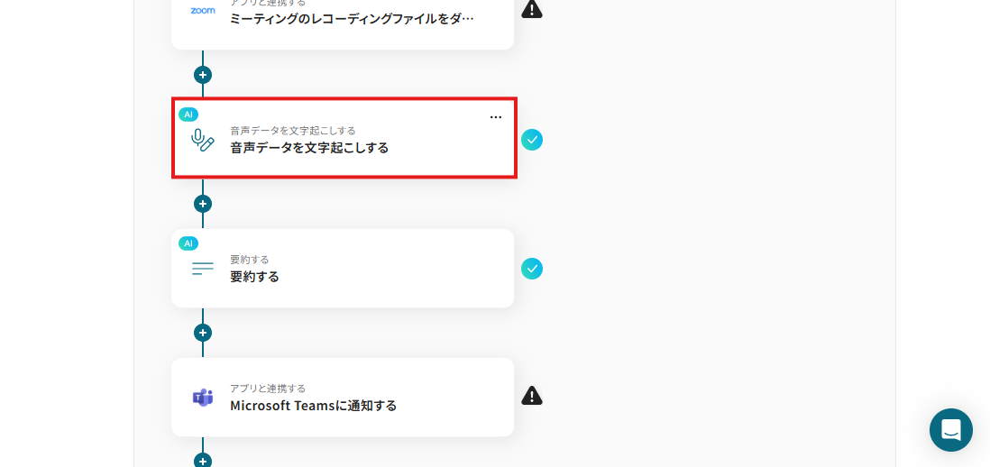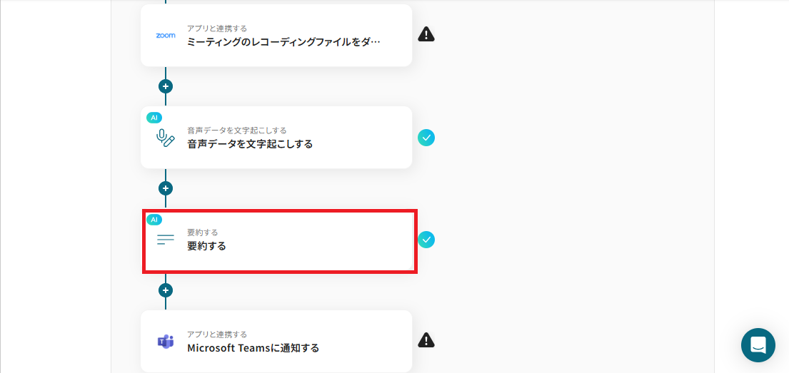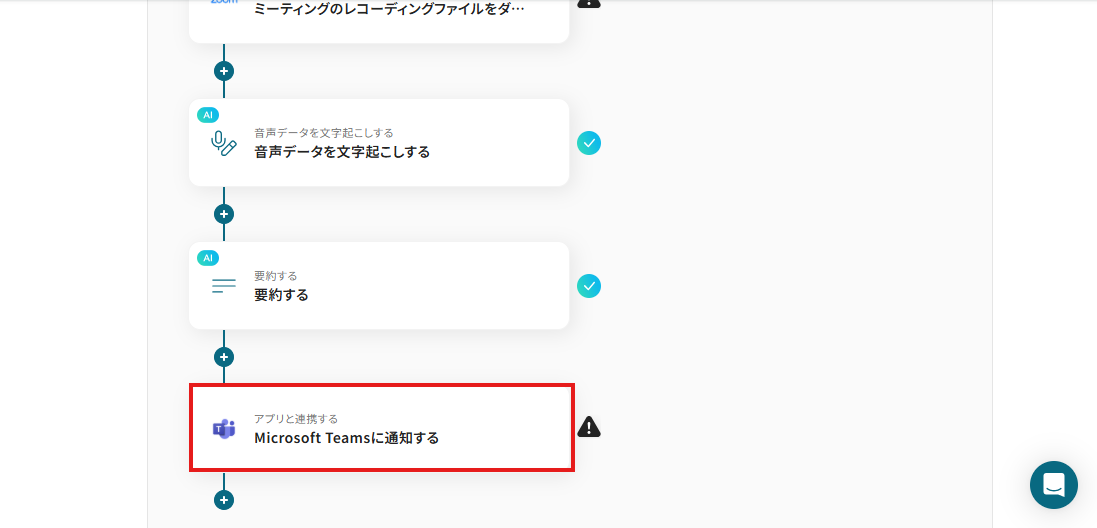 これで、「Zoomでミーティングが終了したら議事録の文字起こしと要約をし、Microsoft Teamsに通知する」フローの完成です!
