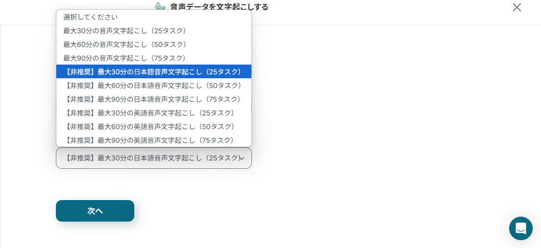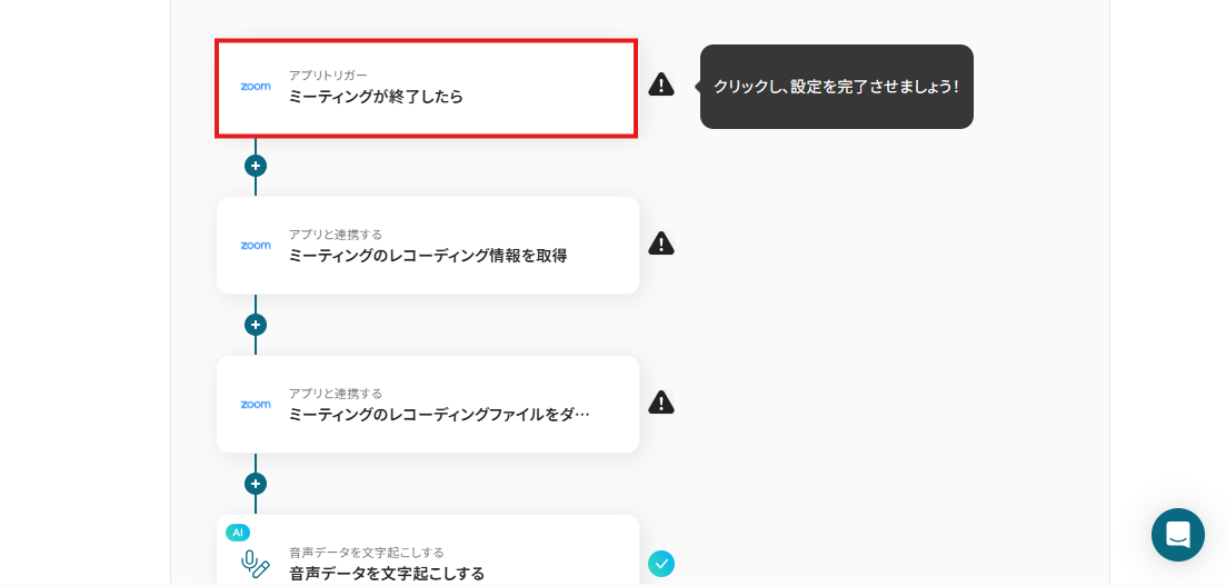 続いて、「音声データを文字起こしする」という項目を設定していきます!