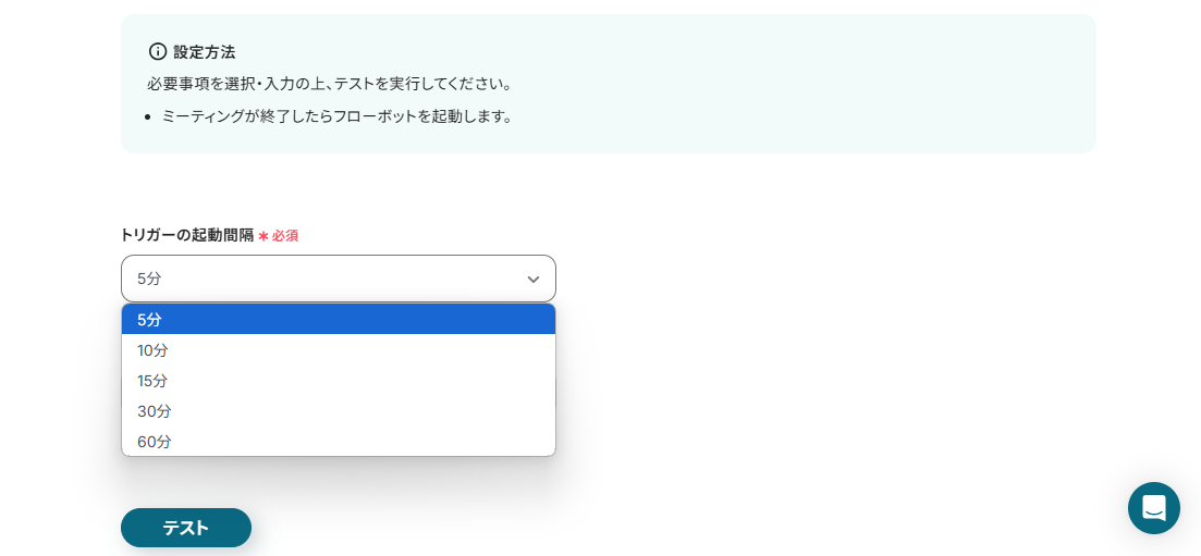 トリガーの起動タイミングは、5分、10分、15分、30分、60分から選択できます。