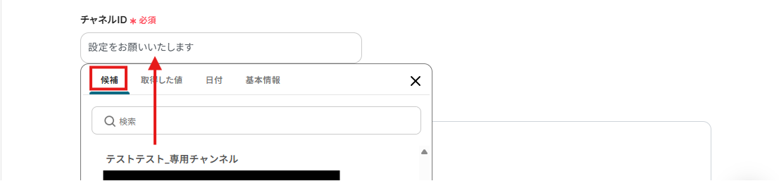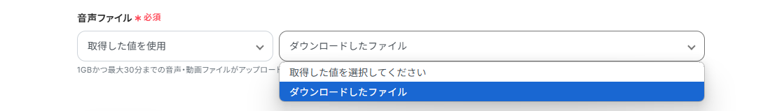 前の操作で取得したダウンロードデータを使用するため、プルダウンから「取得した値を使用」「ダウンロードファイル」を選択してください。