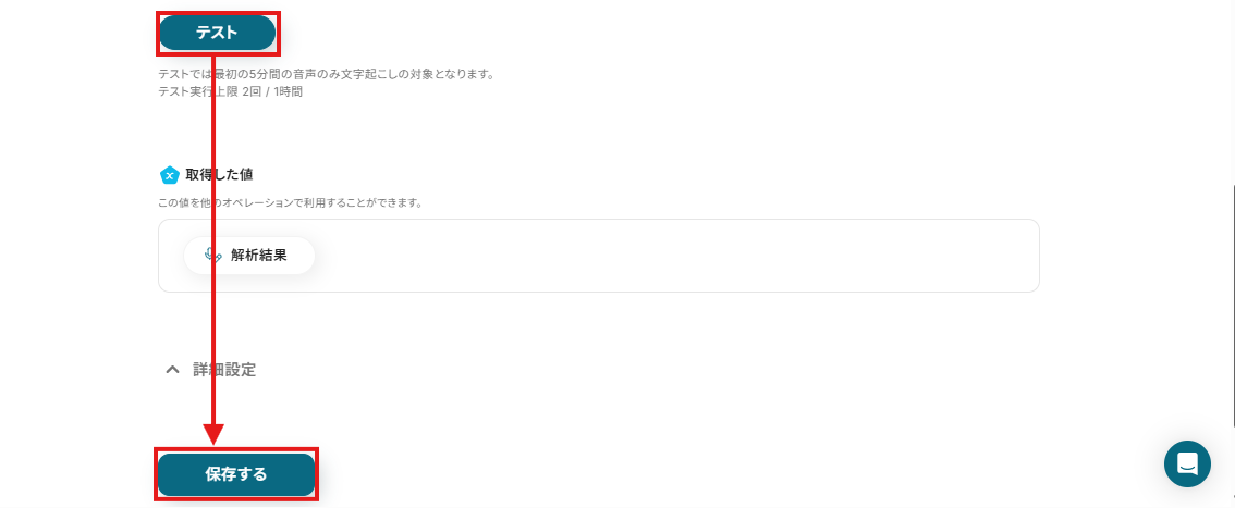 設定を確認したら、「テスト」をクリック後、「保存する」をクリックしてください。