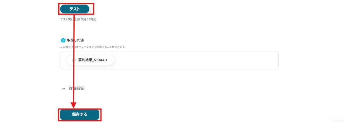 テストを実行し、テストが成功したら「保存する」ボタンをクリックします。