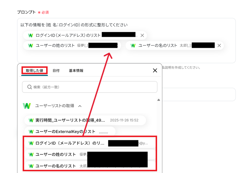 「プロンプト」では、AIへの指示内容を自由に設定できます。