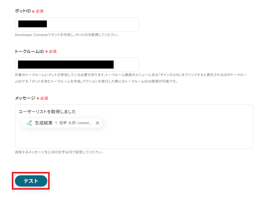 「トークルームID」は、注釈を参考に入力してください。