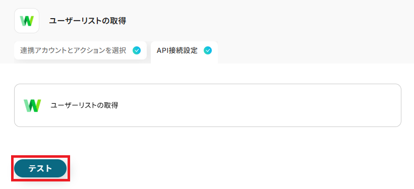全ての設定が完了したら「テスト」を実行しましょう。