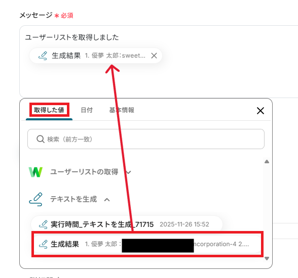 取得した値を活用することで、固定値ではなく、トリガーが実行されるたびに最新の値が反映されます。