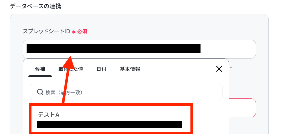 空欄をクリックして、候補の中からレコードを追加したいスプレッドシートを選択します。